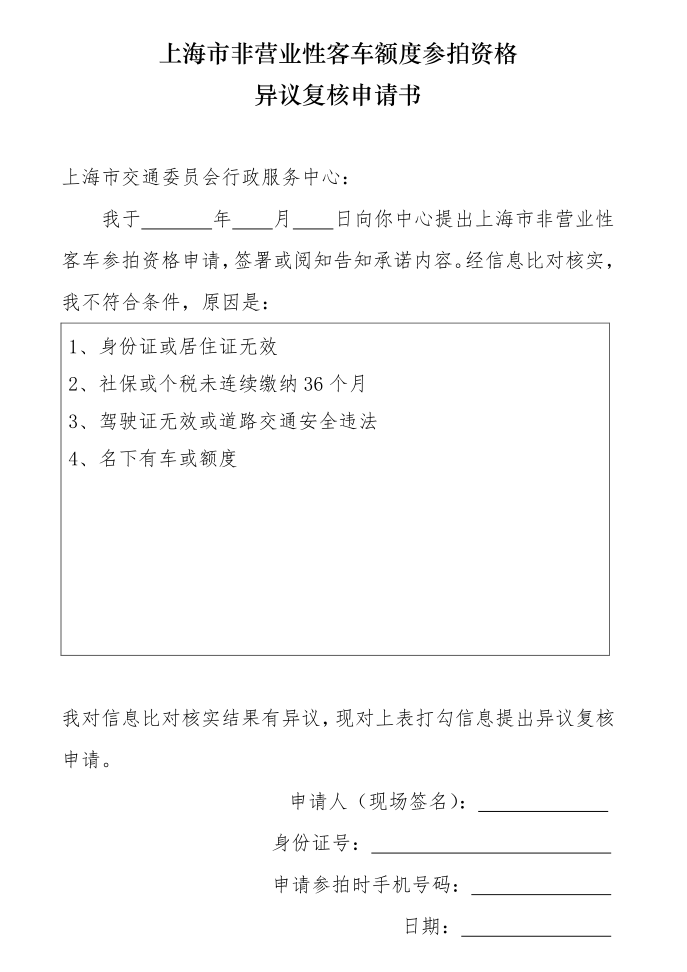 上海沪牌申请拍牌拍卖异议复核受理单(审核失败)